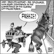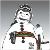 12-31-02 This unpublished cartoon refers to the Aspers’ introduction of “national editorials” throughout their newspaper chain.